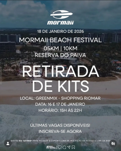 Prepare-se para viver uma experiência única à beira-mar! A Corrida Mormaii Beach Festival chega com tudo na sua próxima edição e promete muita energia, superação e contato com a natureza em um dos cenários mais paradisíacos do litoral pernambucano: a belíssima Praia do Paiva.📅 Data: 18 de janeiro de 2026 (domingo), às 06h da manhã📍 Local: Espaço Gourmet do Paiva – Praia do Paiva, PE